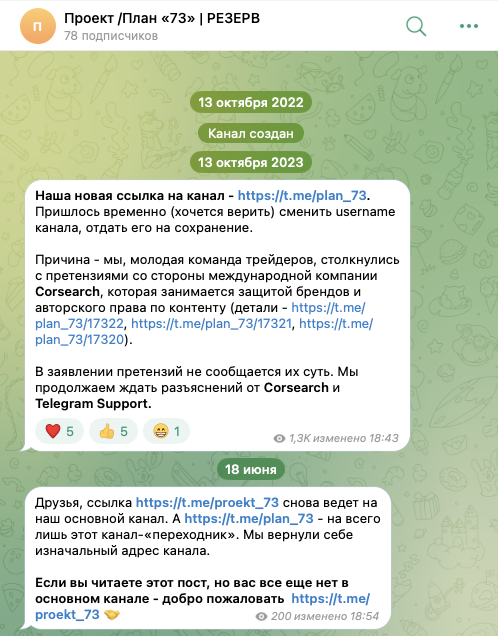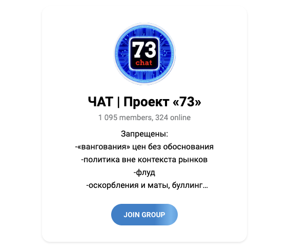 - длительное время присутствия в информационной поле — телеграмм-канал «Проект 73» существует минимум около двух лет;