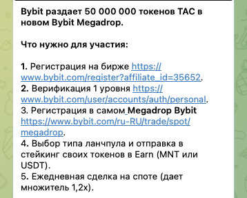 Чаще всего админ тг-канала «Проект 73», admidir публикует анонсы АирДропов и всего, что с этим связано. Рассказывает, как принять участие в тех или иных мероприятиях, чтобы при этом заработать.
