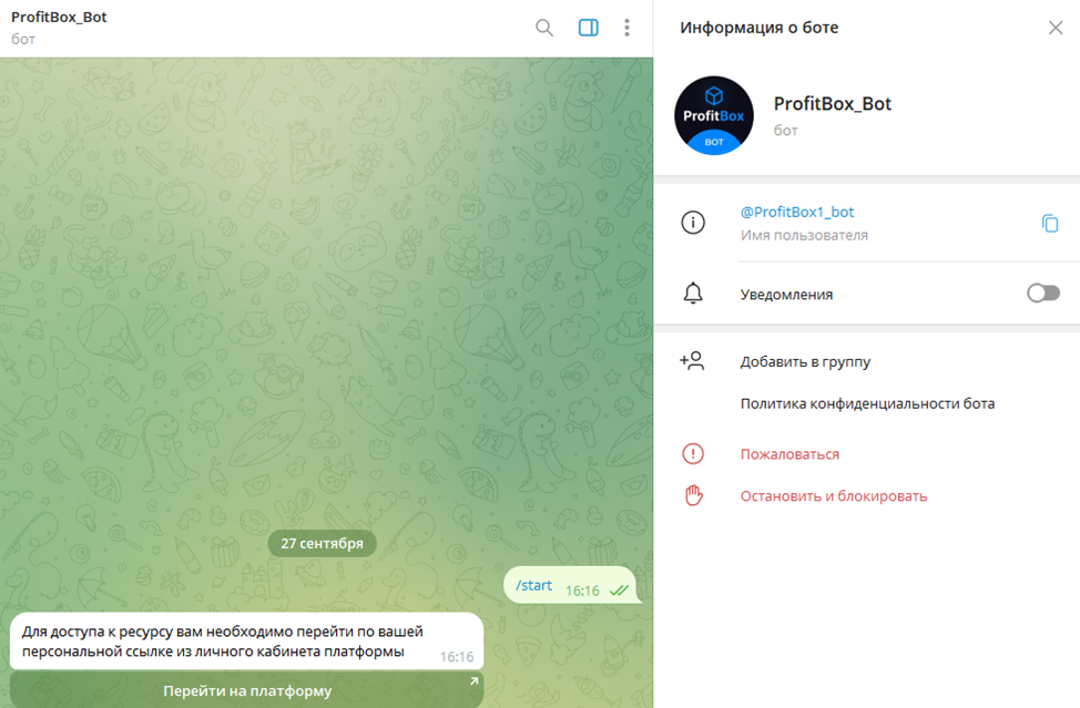 У компании ProfitBox есть бот ProfitBox1 Bot. Он создан исключительно для действующих инвесторов, вероятно используется для построения столов, без авторизации в личном кабинете на официальном сайте.
