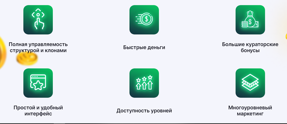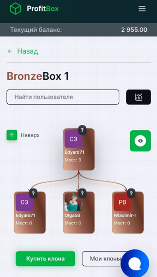 Компания Profit Box предлагает в Телеграме и на сайте быстро и без хлопот заработать миллион за счет двух факторов: инвестиции и привлечение рефералов. В первом случае клиенту предлагается купить одно из трех мест за столом, при необходимости заполнить остальные слоты за счет клонов, приблизившись к цели, увеличив вероятность, получить рефералов, которые регистрируются без кода куратора.