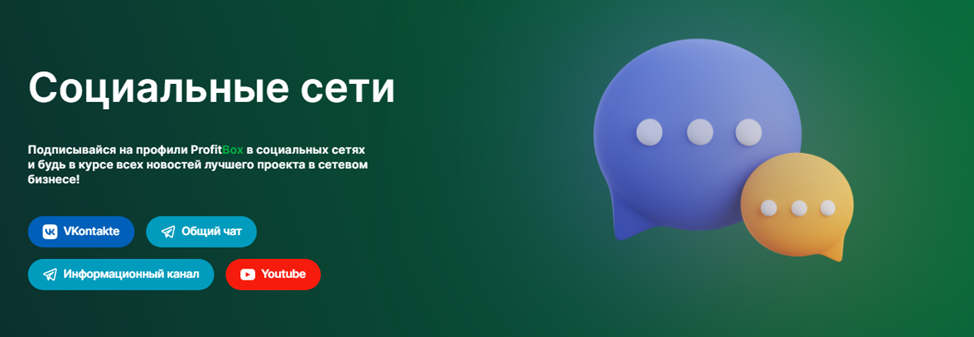 Во многих связанных чатах со схожими названиями “Profit Box гостевой”, регулярно публикуются сообщения с поздравлениями в получении выплат. Но такие посты не подкрепляются выписками с банковских счетов, скриншотами завершенных переводов, подобным источникам информации точно не стоит доверять.Социальные сети проекта