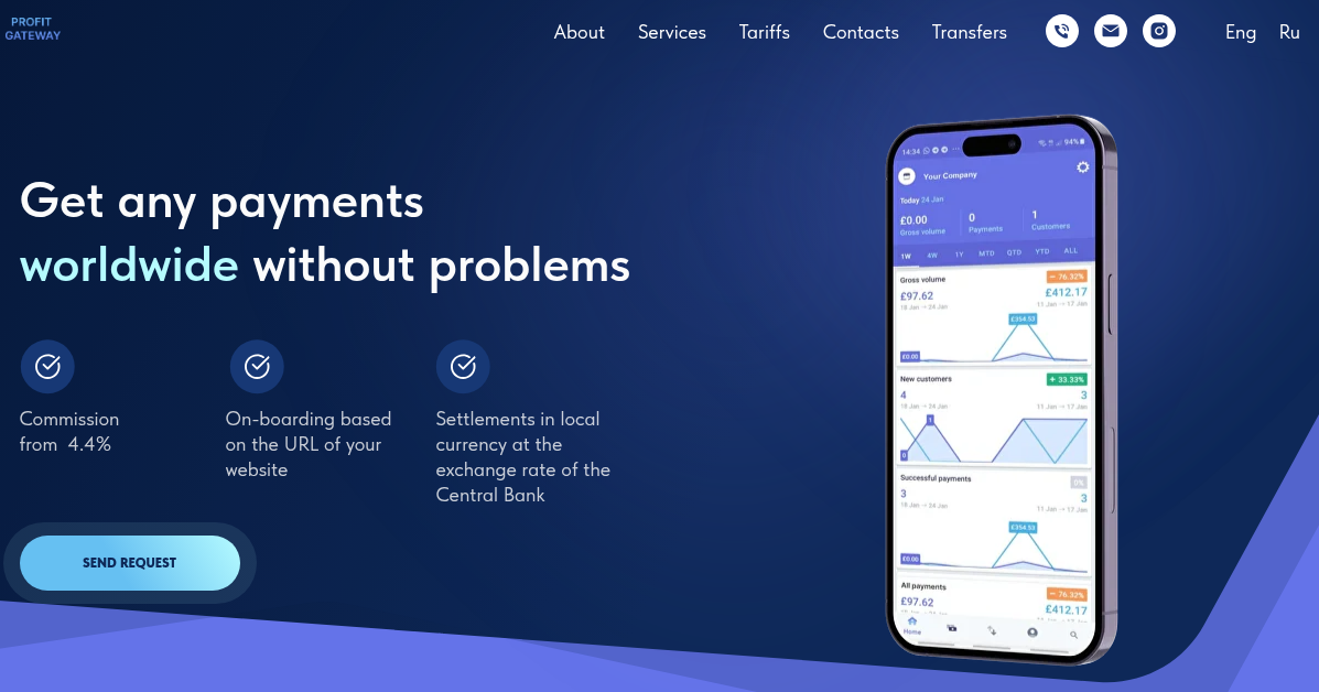 Profit Gateway — платежный сервис для российского бизнеса, предлагающий интернет-эквайринг и международные переводы. Создатели позиционируют его как легальную EMI-компанию с европейскими лицензиями.