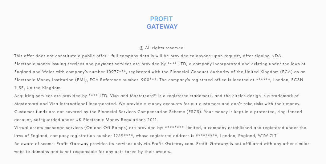 Profit Gateway — сервис без верифицированной истории, с непрозрачным юридическим лицом и внутренними противоречиями в собственных материалах. Передавать платежный трафик или деньги компании, которая скрывает собственное название до подписания NDA и чей домен моложе заявленного стажа, — решение, которое стоит принимать с максимальной осторожностью.