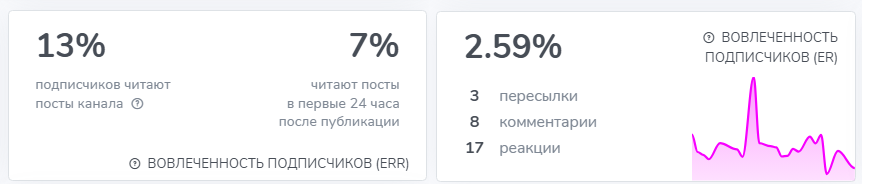 - вовлеченность фолловеров телеграм-канала находится на низком уровне;