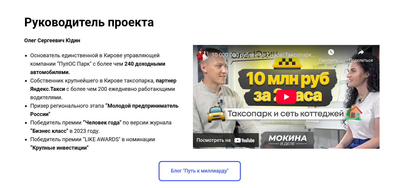 Первый нюанс в анализе «ПулОС Парк» – это разрыв между медийной картинкой и документальной реальностью. Лицом бренда выступает Олег Юдин – личность публичная, с кучей интервью, премиями и активным YouTube-каналом. Он создает образ надежного предпринимателя, который «строит бизнес на века». Такой подход подкупает, ведь в отличие от анонимных крипто проектов, здесь есть с кого спросить.