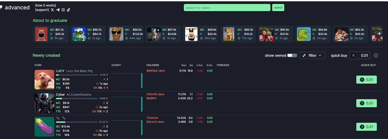 • возможность быстро создавать собственные мем-токены на базе Pump.fun.