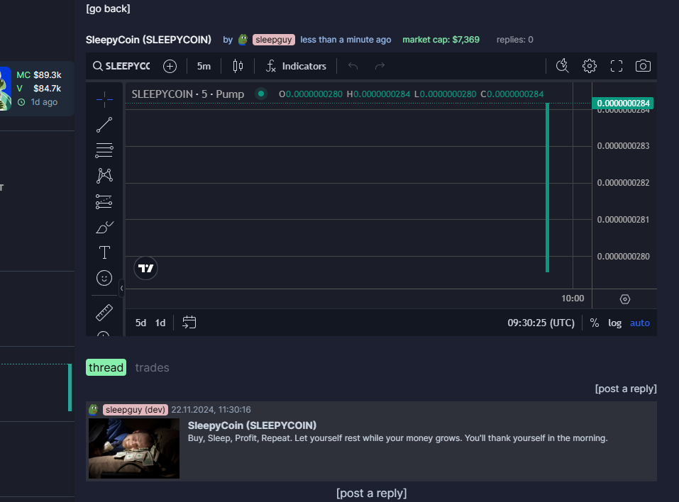 Пользователи могут создать собственный мемкоин, указав название, тикер и загрузив изображение. Процесс занимает несколько минут и требует минимальных технических знаний. Стоимость создания токена составляет около 0,02 SOL (примерно $3). А комиссия за транзакции — 1%.