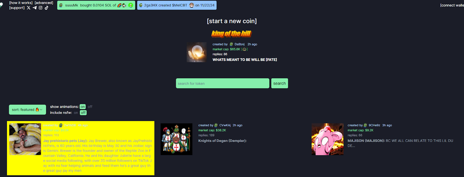 Цена memecoin увеличивается по мере роста спроса. При достижении рыночной капитализации $69 000 токен автоматически добавляется на децентрализованную биржу Raydium. Это дает ему дополнительную ликвидность. Платформа использует механизм Rug Pull. Он уменьшает риск столкнуться с мошенничеством.