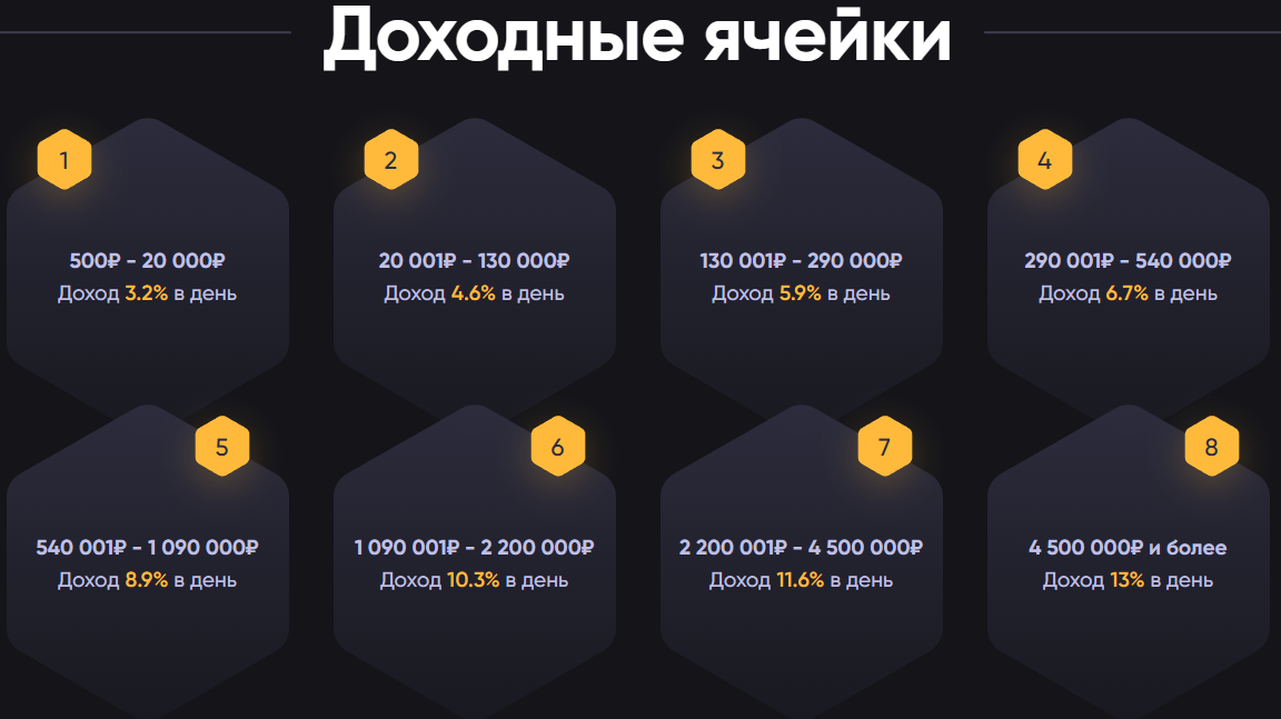 Также они имеют реферальную систему с возможностью заработка от 5 до 10% нового участника. Этот способ дохода от будущих пользователей напоминает систему финансовой пирамиды.