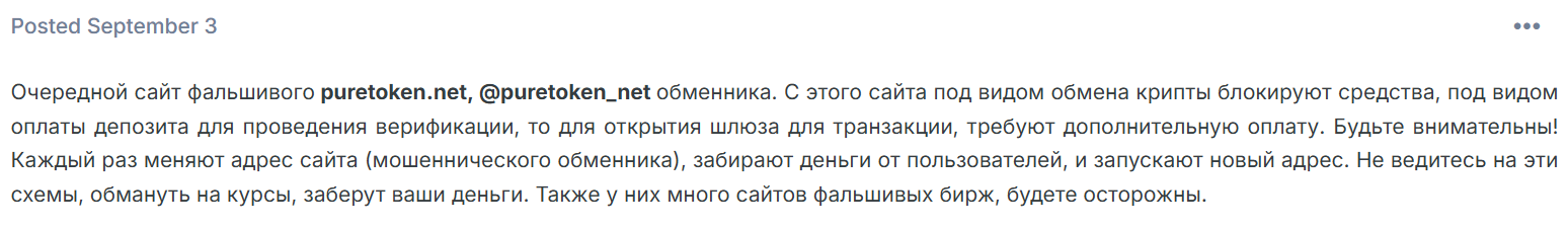 - обменник Puretoken отзывы от реальных пользователей не получил.