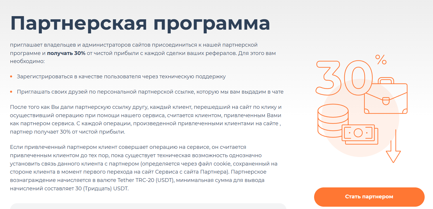 Сервис создал реферальную программу, которая позволяет пользователям получать 30% от прибыли рефералов. Изначально деньги начисляются на счет аккаунта клиента, а когда сумма достигнет 30 долларов, то ее можно будет вывести. Несмотря на наличие нескольких разделов, конкретной информации о создателях обменника, его работе и прочих важных для проверки факторах тут нет.Домен обменника Puretoken был зарегистрирован 4 июля 2024 года. Но обновление его было 15 августа 2025 года. На сайтах мониторингах обменников данный сервис не обнаружен. Также о нем нет упоминаний н других на специализированных ресурсах с рейтингом криптообменников. Соответственно, есть высокая вероятность, что домен был выкуплен и около месяца назад переделан под обменник. Поэтому он и остается неизвестным.