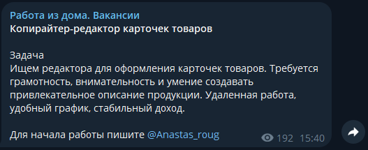 Поскольку тг каналов с поиском вакансий и работы из дома в интернете очень много, найти отзывы именно на этот нам не удалось. В любом случае, приведенных выше аргументов, кажется, достаточно для сомнений.
