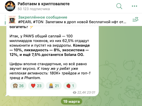 На телеграмм-канал «Работаем в криптовалюте», rabotaemvkripte, на 26 мая 2025-го года, подписано около 50 тысяч пользователей. Публикации просматривают в среднем по 20-25 тысяч раз.