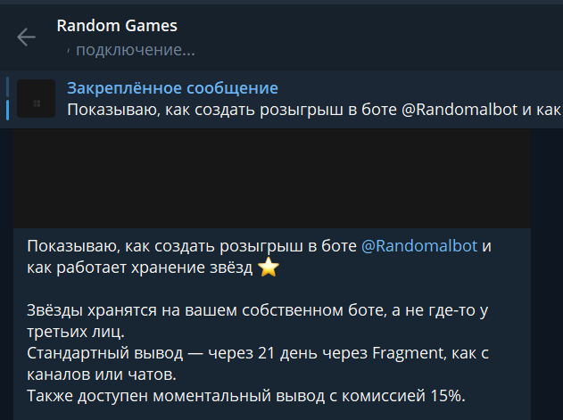 Деятельность бота Random Games в Тг