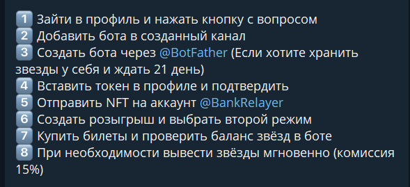 Владельцы говорят, что можно создавать розыгрыши прямо в боте, подключая их к своим каналам, а упор сделан на использование внутренней валюты Telegram Stars. Авторы особенно подчеркивают, что звезды хранятся на собственном токене пользователя, а не на кошельке сервиса, а это повышает уровень безопасности.