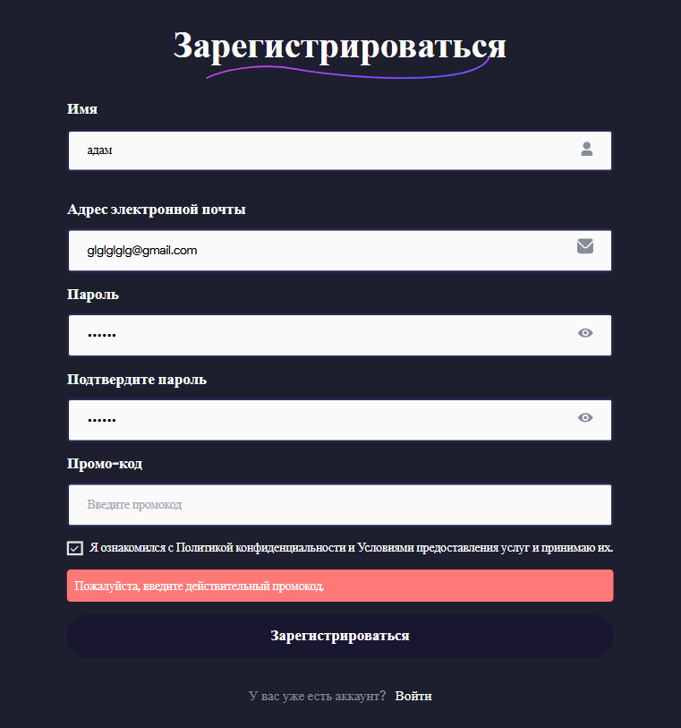 Попытка зарегистрироваться на сайте и посмотреть, что там внутри, оказалась безуспешной. Без промокода создать аккаунт в кошельке нельзя. Это очень странно, подобных ограничений в других криптокошельках нет.