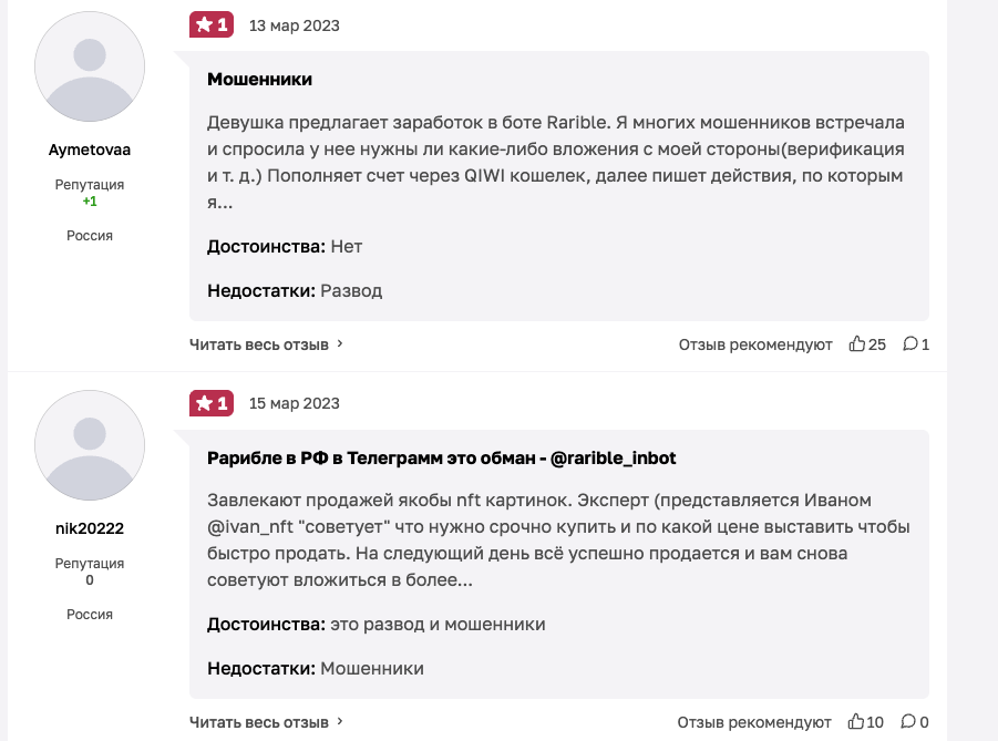 Отзывы о RaribleCryptoBot в Тг