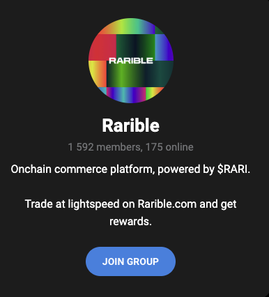 В нем есть единственная ссылка – на Телеграм-чат Рарибл. Других ссылок нет.