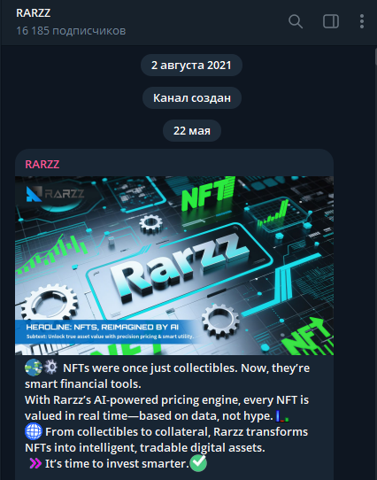Телеграм-канал rarzz 1 создан 2 августа 2021 года. Первый пост появился только 22 мая 2025 года. Разрыв в почти четыре года между созданием канала и началом активности выглядит крайне подозрительно. Видимо, его купили. Канал имеет 16 тысяч подписчиков, но комментарии полностью отключены – классический признак сокрытия негатива.