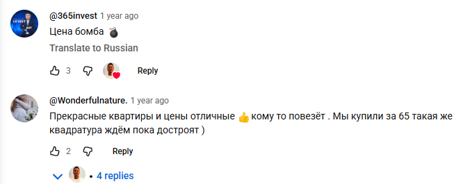 Люди активно хвалят цены и называют их очень выгодными. Один покупатель рассказал, что купил похожую квартиру за 65 тысяч евро и теперь ждет завершения строительства. Другие комментаторы пишут, что планируют прилететь в Мерсин для личного осмотра объектов.