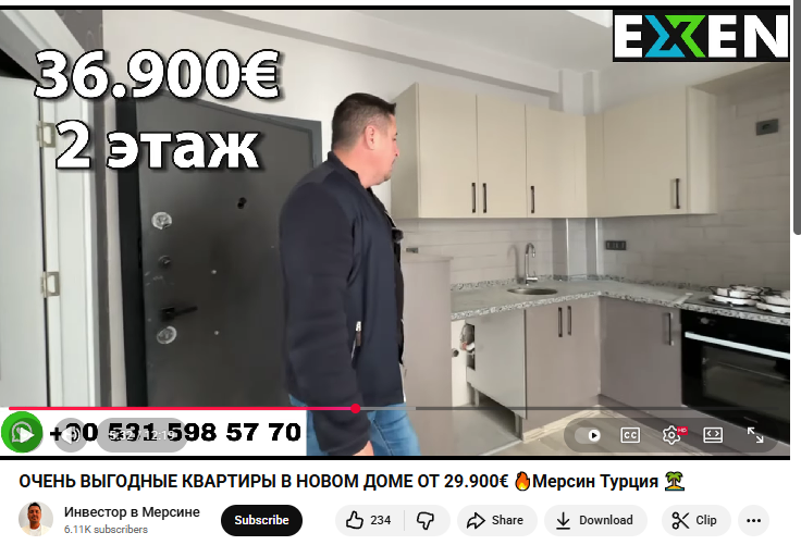 В роликах на YouTube мужчина показывает квартиры в разных районах Мерсина. Формат простой – ходит по объектам и комментирует планировки, расположение, инфраструктуру. Съемки проходят в реальных новостройках и готовых домах, а не в рекламных материалах. В каждом видео четко озвучивает цены на недвижимость.