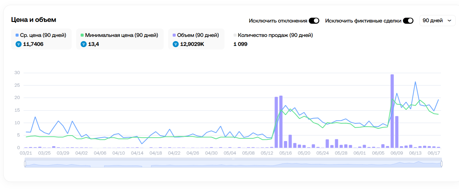 Оценить однозначно потенциал Проигрывателя пластинок довольно сложно. Сейчас в целом наблюдается рост рынка телеграм-подарков, поэтому инвестиция в любой из них может быть прибыльный. График стоимости и объема торгов Record Player отлично демонстрирует восходящую динамику: мы уже наблюдаем два пика. Можно вполне ожидать продолжения подобной тенденции.