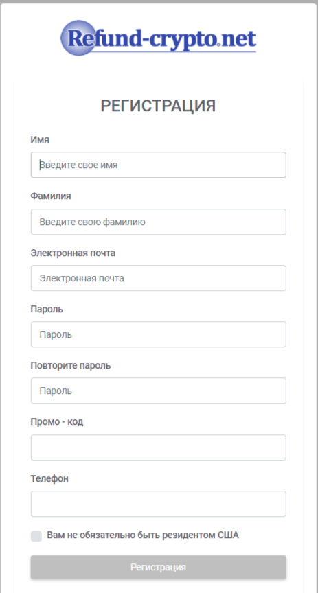 Криптовалютный кошелек «Рефунд Крипто» доступен пользователям из разных государств. Для его открытия не обязательно быть резидентом США. Возможно, при создании аккаунта может помочь служба поддержки сайта support@refund crypto net. Однако связаться с саппортом довольно сложно.