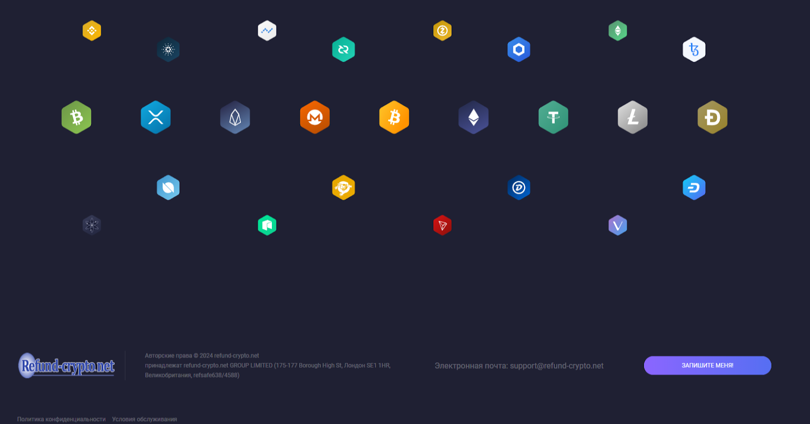 Администрация портала Refund Crypto net crypto не предоставляет пользователям подтверждений своей принадлежности к упомянутой компании. На портале нет информации о лицензии и юридических документах. Также отсутствуют данные о сотрудничестве с органами контроля, что может говорить о потенциальных проблемах для клиентов.