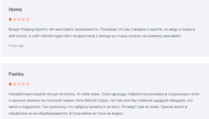 За время существования в интернете проект Refund Crypto не приобрел положительных отзывов. Слишком анонимный кошелек вызвал недоверие у многих пользователей, об этом говорят комментарии в сети.