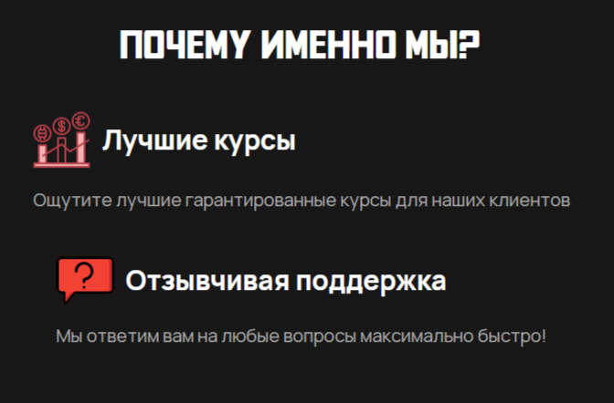 Внизу сайта указывается ссылка на телеграм-аккаунт службы поддержки. Менеджер работает ежедневно с 10 до 22 часов по МСК. Электронной почты нет. Юридических данных конторы тоже не видно, что может намекать на ее нелегальную работу.