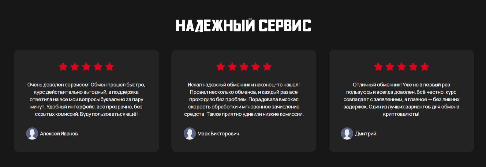 При этом на сайте самого ресурса расположено 3 положительных высказывания от якобы клиентов. Исходя из всего нами увиденного, доверия они не вызывают. Скорее всего, разработчики их сами выдумали.