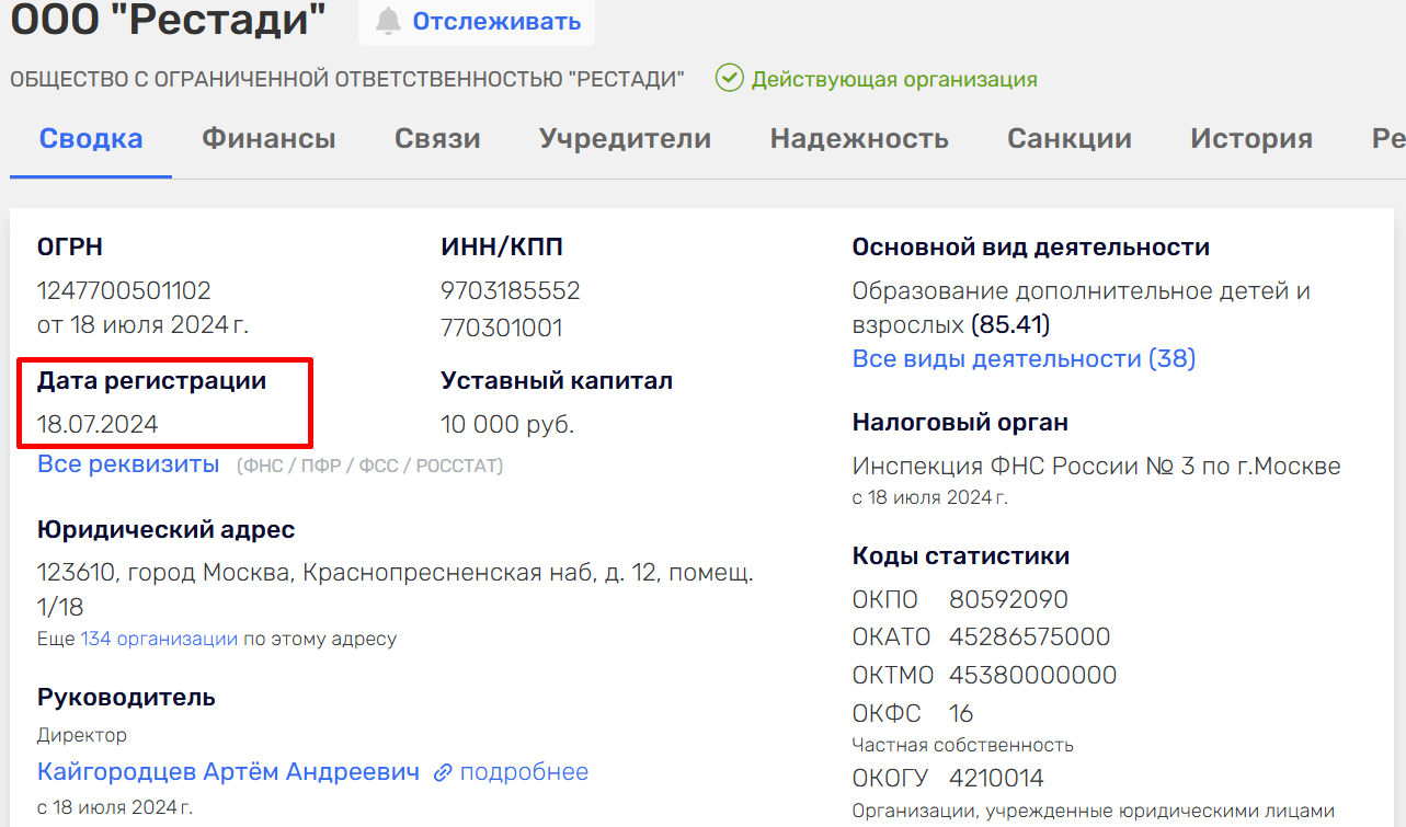Сайт онлайн-школы был зарегистрирован в мае 2024 года. ООО была создана на несколько месяцев позже – в июле 2024 года.