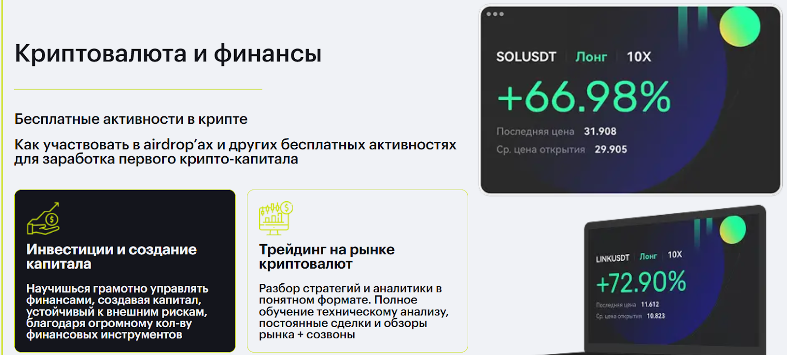 Помимо вышеупомянутых направлений обучения, на Restudy io можно приобрести знания в сфере трейдинга и инвестиций. Однако какие успехи у самого преподавателя, который будет помогать осваивать торговлю на бирже, неизвестно.