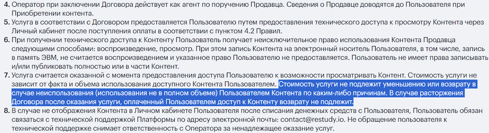 Ученикам стоит обратить внимание на заявление о том, что подписку можно отменить в любой момент. Однако в правилах площадки ясно указано, что стоимость услуги не подлежит возврату в случае неиспользования. То есть подписку отменить можно, но это никак не повлияет на возврат средств клиенту даже в случае, если пользователь не удовлетворен качеством предоставленного в обучении материала.