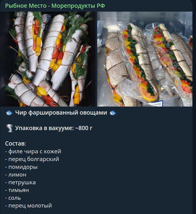 Если верить описанию, телеграм-канал «Рыбное место морепродукты РФ» специализируется на торговле морепродуктами. С учетом того, что это скоропортящиеся товары, здесь обеспечиваются лучшие условия хранения и транспортировки, которые отвечают нормам и требованиям безопасности. При этом у магазина нет официального сайта или прочих вариантов связи. ТГК является единственным местом, где предлагается их продукция. Самовывоз и реальный магазин также отсутствуют.