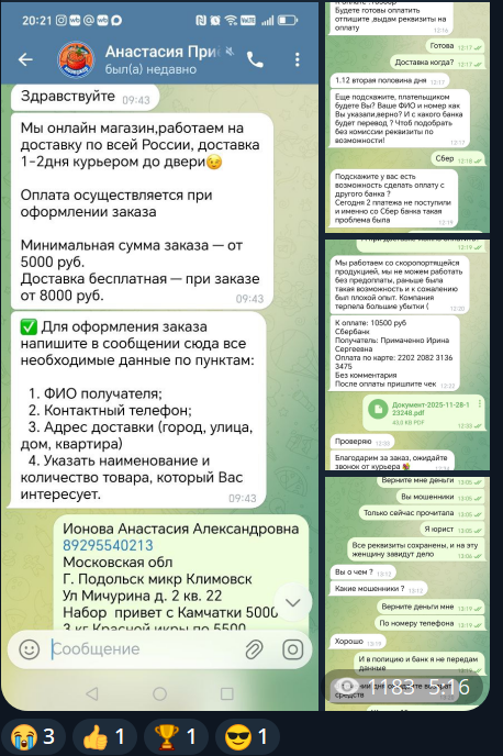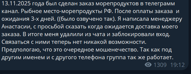 Обзор телеграм-магазина «Рыбное место»: отзывы пользователей о INastiya Rybnuyy Zakazi и анализ деятельности Долбиловой Анастасии Ивановны