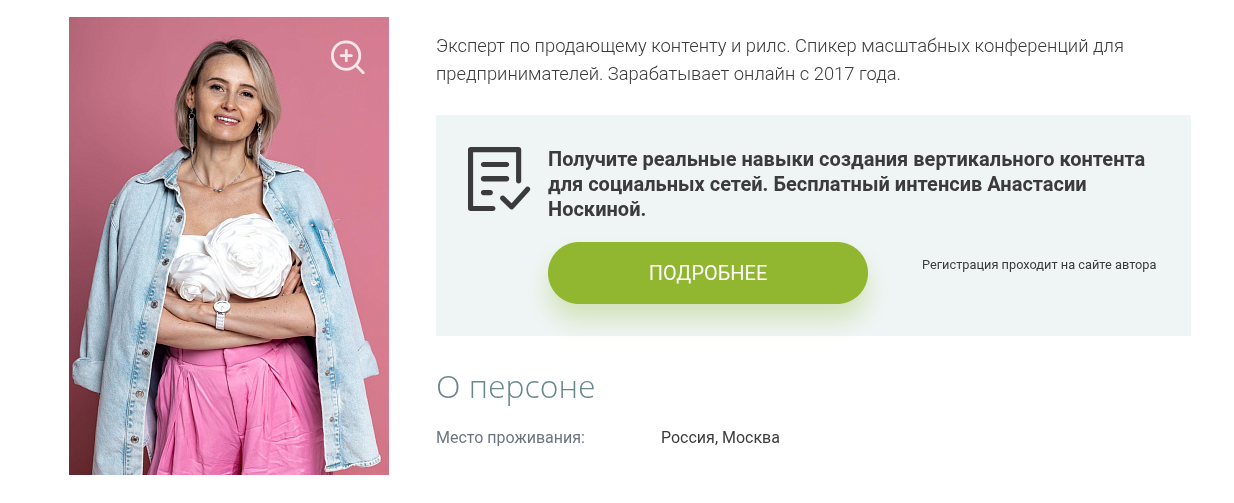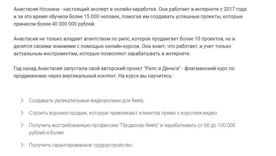 Эксперт по контенту и рилс Анастасия Носкина: обзор деятельности и отзывы о курсе «Рилс и Деньги»