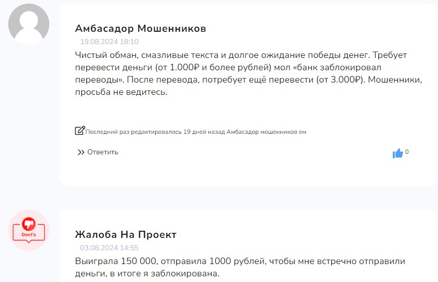 На независимых ресурсах уже появились отзывы о Телеграмме Рита Щедрость: подписчики подтверждают схему развода с несуществующим призом и вытягиванием дополнительных платежей.