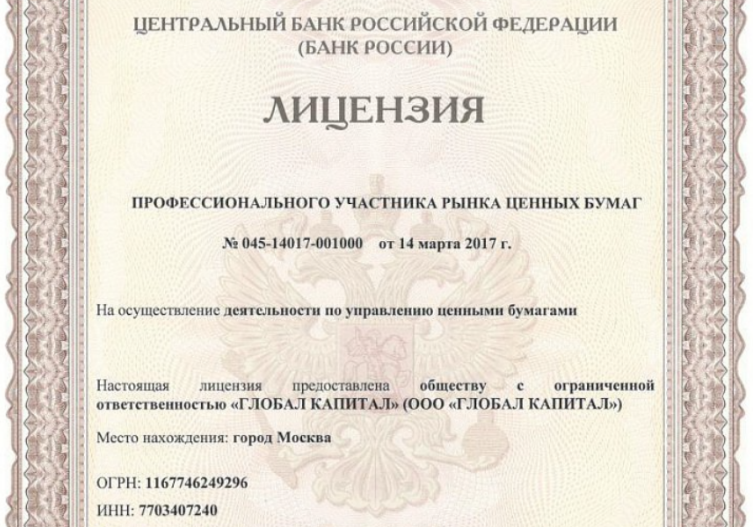 На чем сразу же сыпется легенда River Treidbot, так это на юридическом оформлении. Чтобы войти в доверие к новичкам и создать иллюзию легальности, администраторы бота выложили скан-копии разрешительных документов. Якобы проект работает под крылом ООО «ГЛОБАЛ КАПИТАЛ» и получил от ЦБ РФ лицензию профессионального участника рынка ценных бумаг.