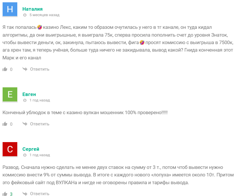 На них люди пишут, что это очевидный скам с привлечением юзеров на мошеннические сайты с казино, откуда невозможно вывести деньги после получения выигрыша. То есть сам канал работает как шлюз для завлечения жертв в схему.