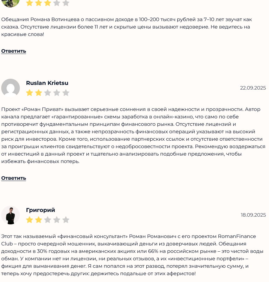 Объективные аргументы в пользу надежности сервиса и наоборот представлены ниже. Воспользуйтесь ими, чтобы провести окончательный анализ и решить, пользоваться ли рекомендациями Романа Мани.