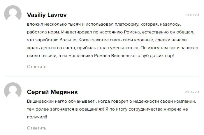 Сегодня в интернете по поводу деятельности спекулянта есть множество положительных и отрицательных отзывов. Однако существуют причины, по которым не стоит доверять Вишневскому Роману Андреевичу: