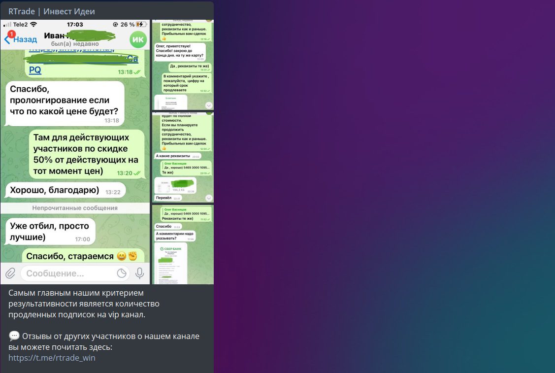 Кроме Телеграм-канала у RTrade Инвест идеи нет других платформ. В Телеграме описаны способы получения прибыли, которые якобы предлагает сервис своим клиентам: