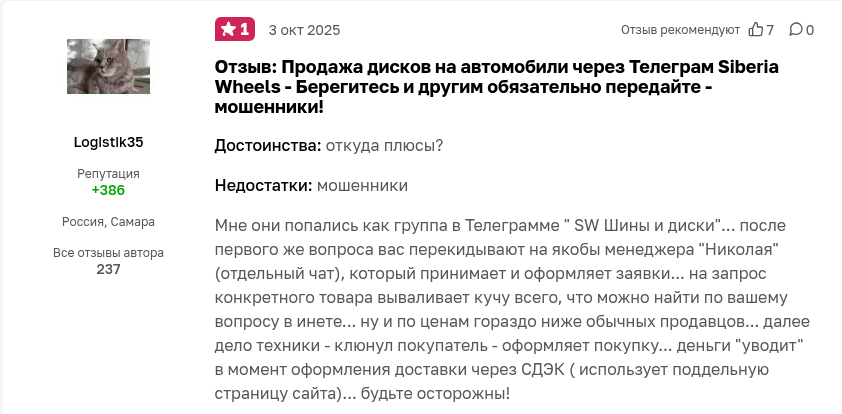 Информационное поле вокруг паблика плотно забито негативом от пострадавших автолюбителей. Многие пользователи профильных форумов отмечают, что ранее эта же группировка орудовала под брендом Siberia Wheels, но после серии громких разоблачений поспешно провела ребрендинг.