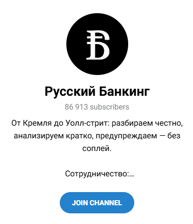 Собрал ТГ канал «Русский банкинг» больше 86 тысяч подписчиков. Но посты читает 4-5 тысяч человек, похоже, подписчики накручены. На канале нельзя оставлять комментарии и ставить реакции. Такой подход типичен для мошеннических проектов. По состоянию на 25 сентября 2025 года канал уже удален.