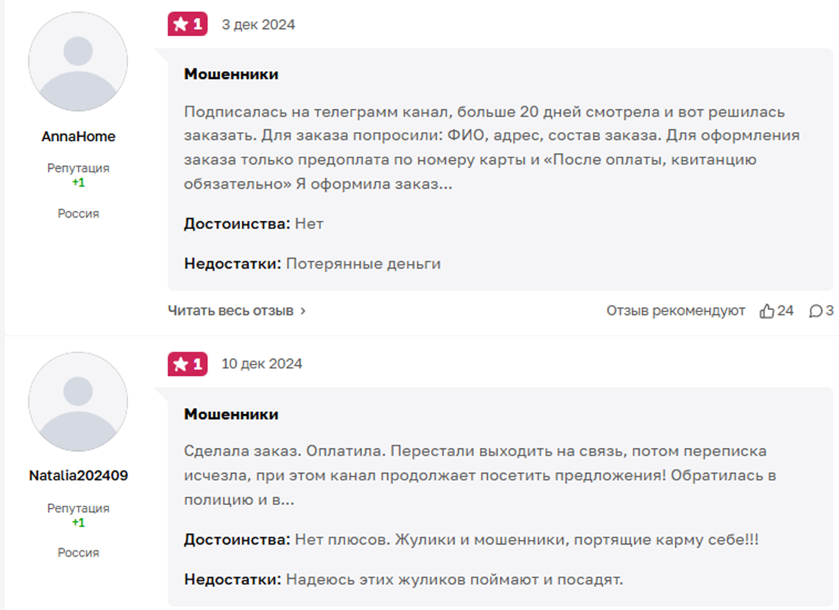 По словам пользователей, мошенники просят предоплату и блокируют покупателя. Никакой товар никто не высылает, а при оформлении заказа обещают просто невероятные условия – скидки, доставку за 1 день и высочайшее качество продукции.