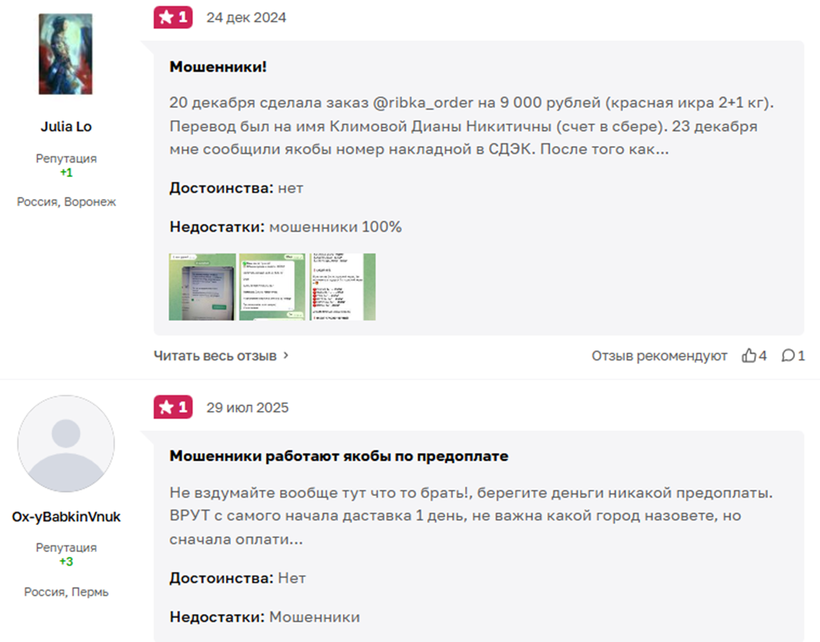Отзывы на «Рыбка магазин морепродуктов» в Телеграме