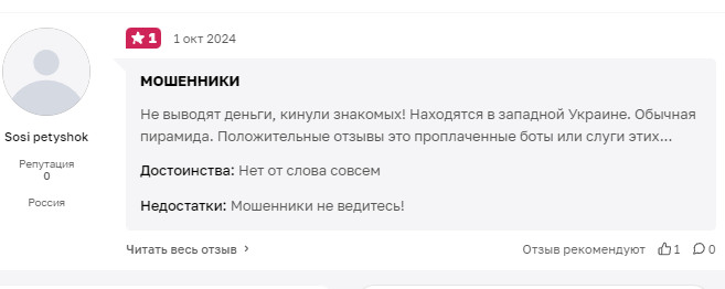 В этом плане у проекта даже нет яростных адептов, которые защищают честную компанию. Все отзывы исключительно отрицательные.