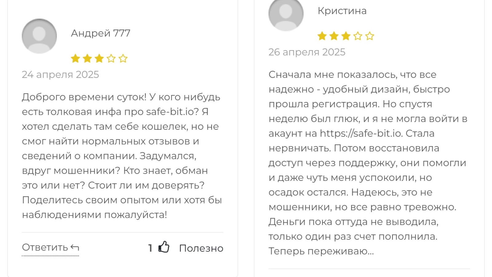 Если вы желаете поделиться мнением о Safebit, можете оставить комментарий под обзором.