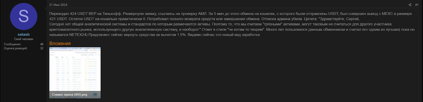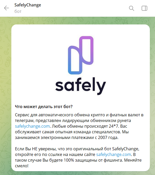 Также встречаются жалобы, что Telegram-бот SafelyChange используется как инструмент обмана: при малых суммах обмен работает, но при более крупных транзакциях средства зависают или исчезают.